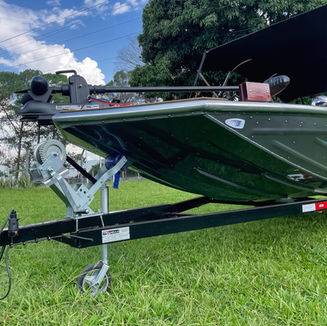 Cada detalhe aqui tem motivo: plataforma limpa pra não enroscar em nada, caixa de varas grande, acesso rápido ao equipamento, cockpit confortável e estabilidade que passa confiança.